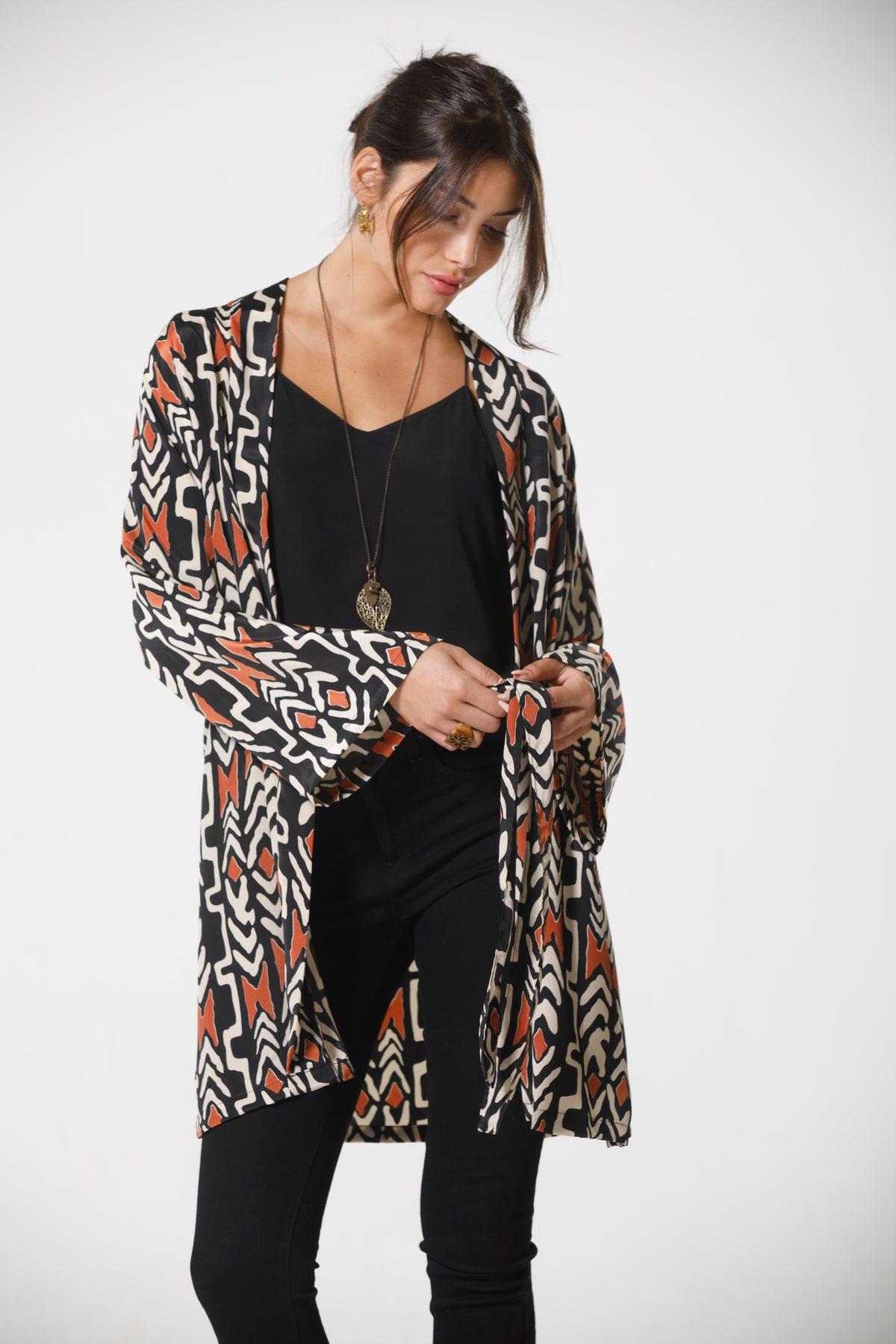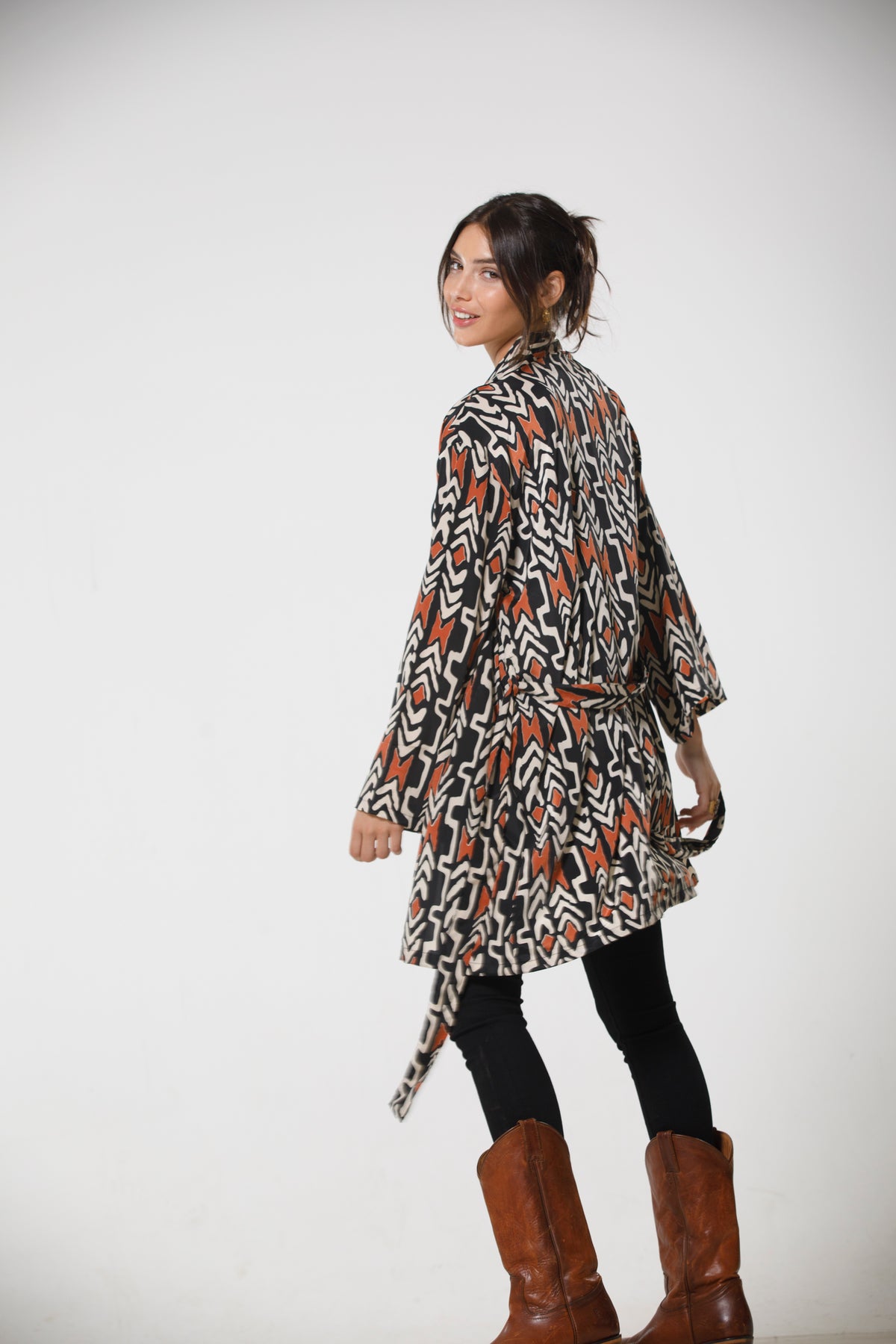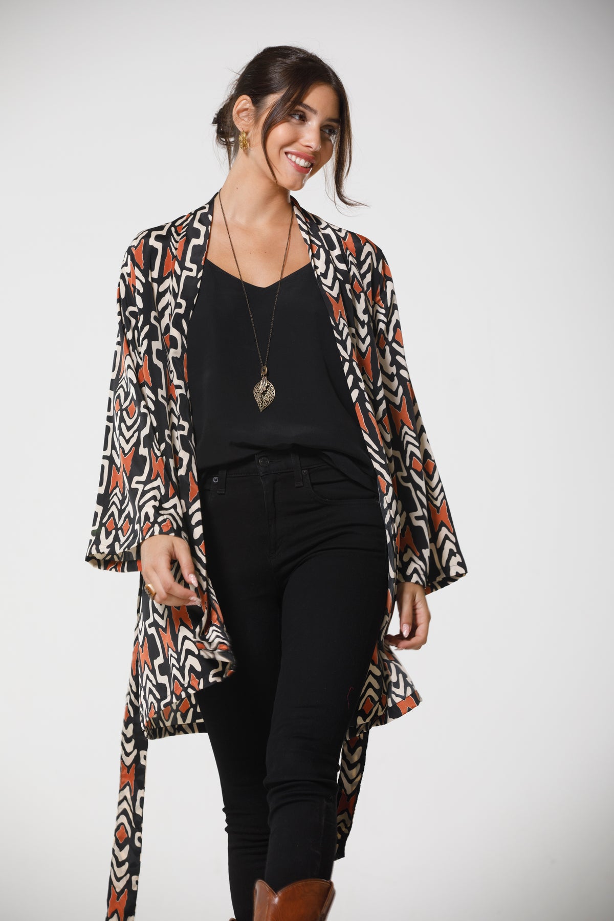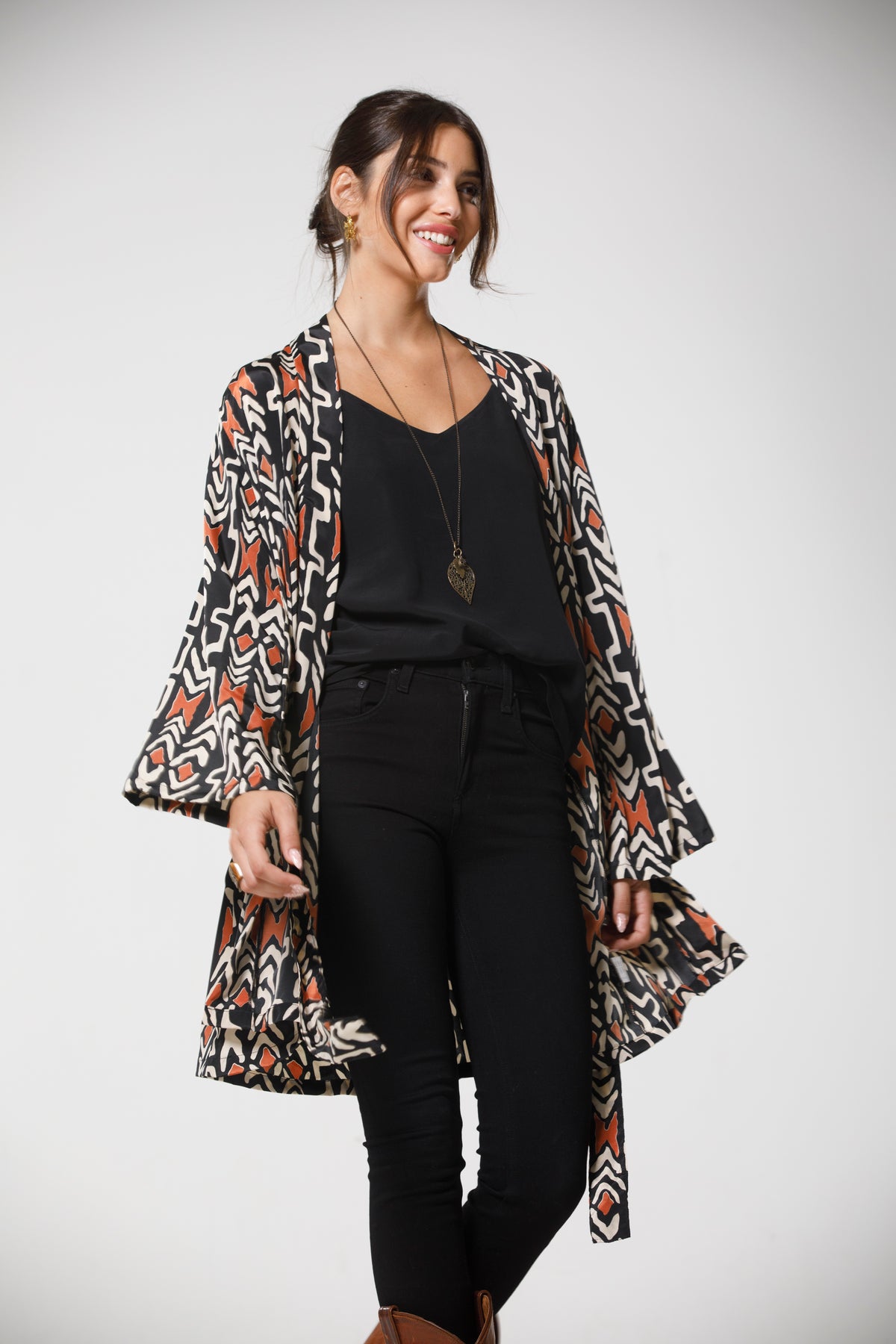 גזרת קימונו קלאסית ומנצחת, שרוול מתרחב בסגנון קימונו, מתאים ליום או לערב, וגם לקיץ למשרד ולמזגן, ולעונות מעבר.