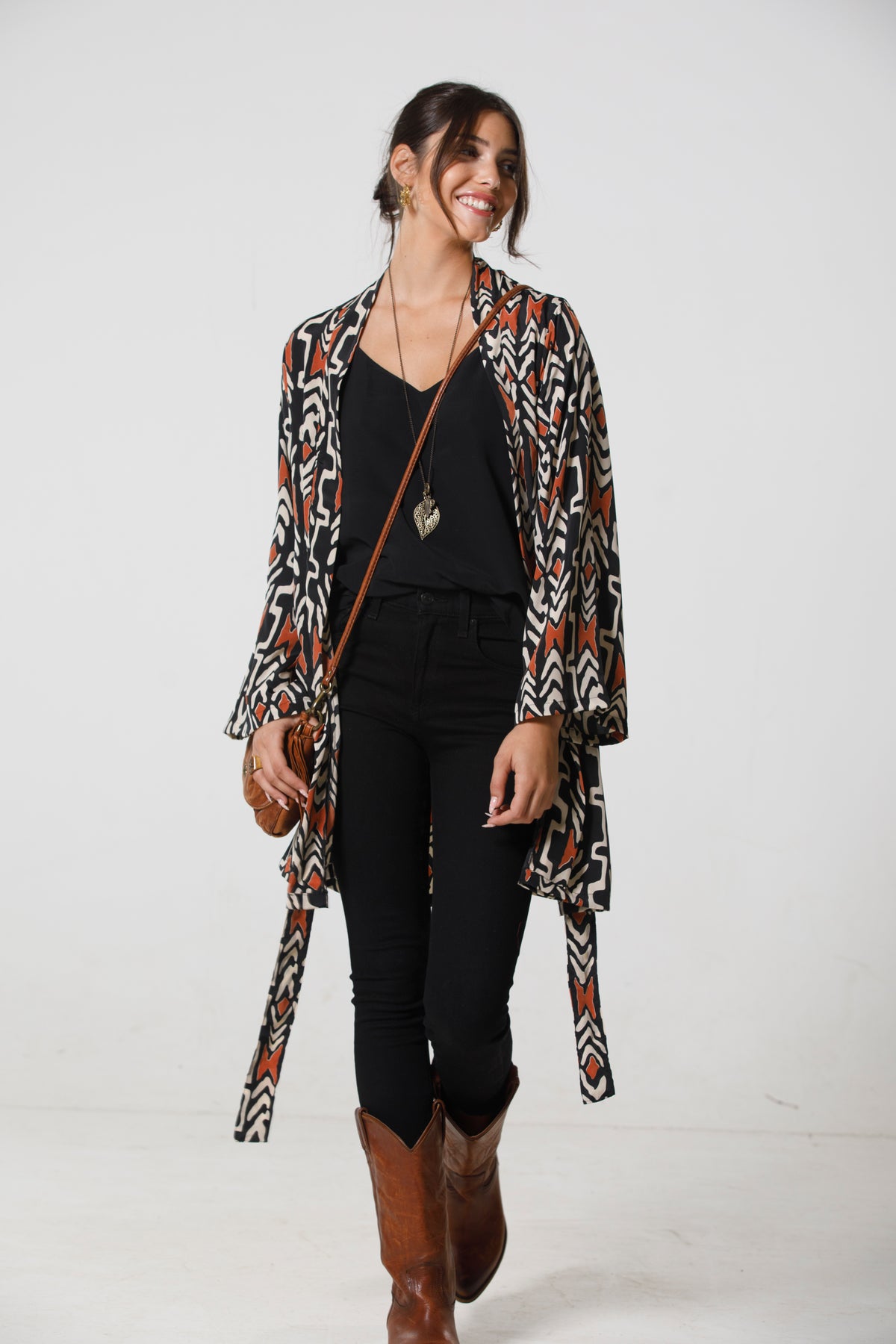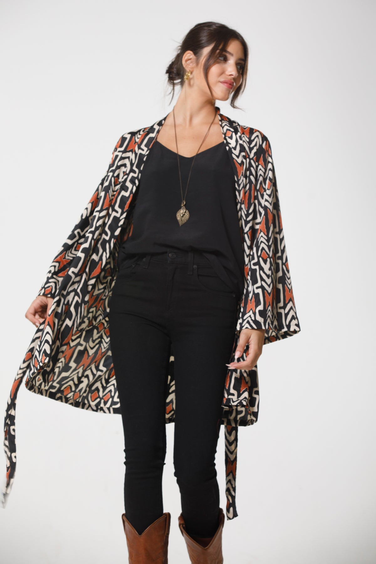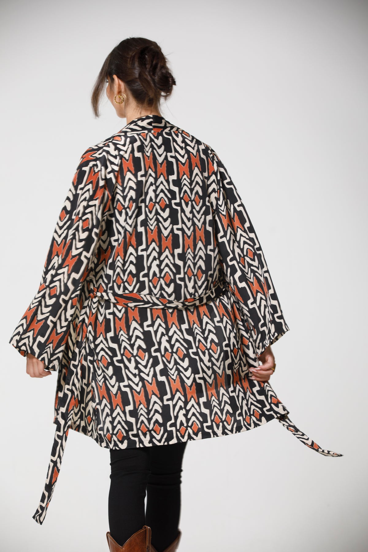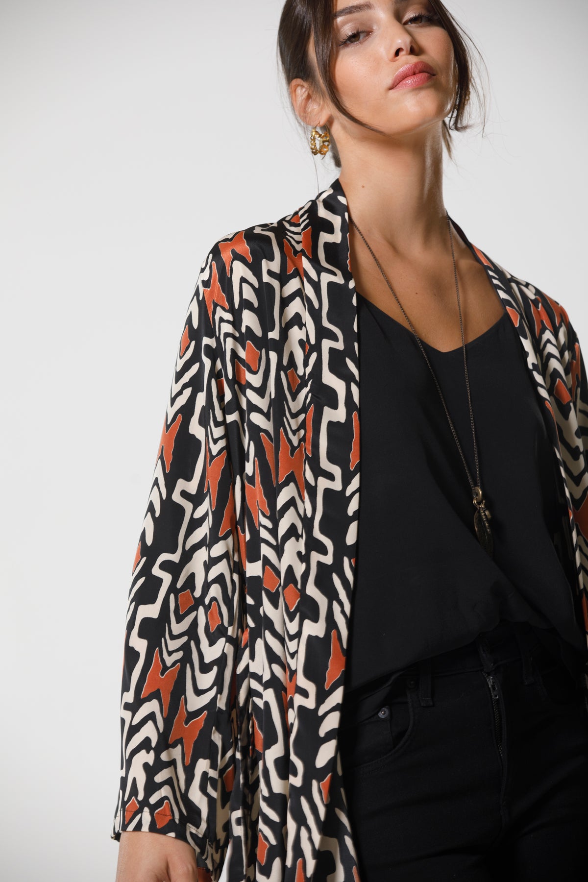 גזרת קימונו קלאסית ומנצחת, שרוול מתרחב בסגנון קימונו, מתאים ליום או לערב, וגם לקיץ למשרד ולמזגן, ולעונות מעבר.