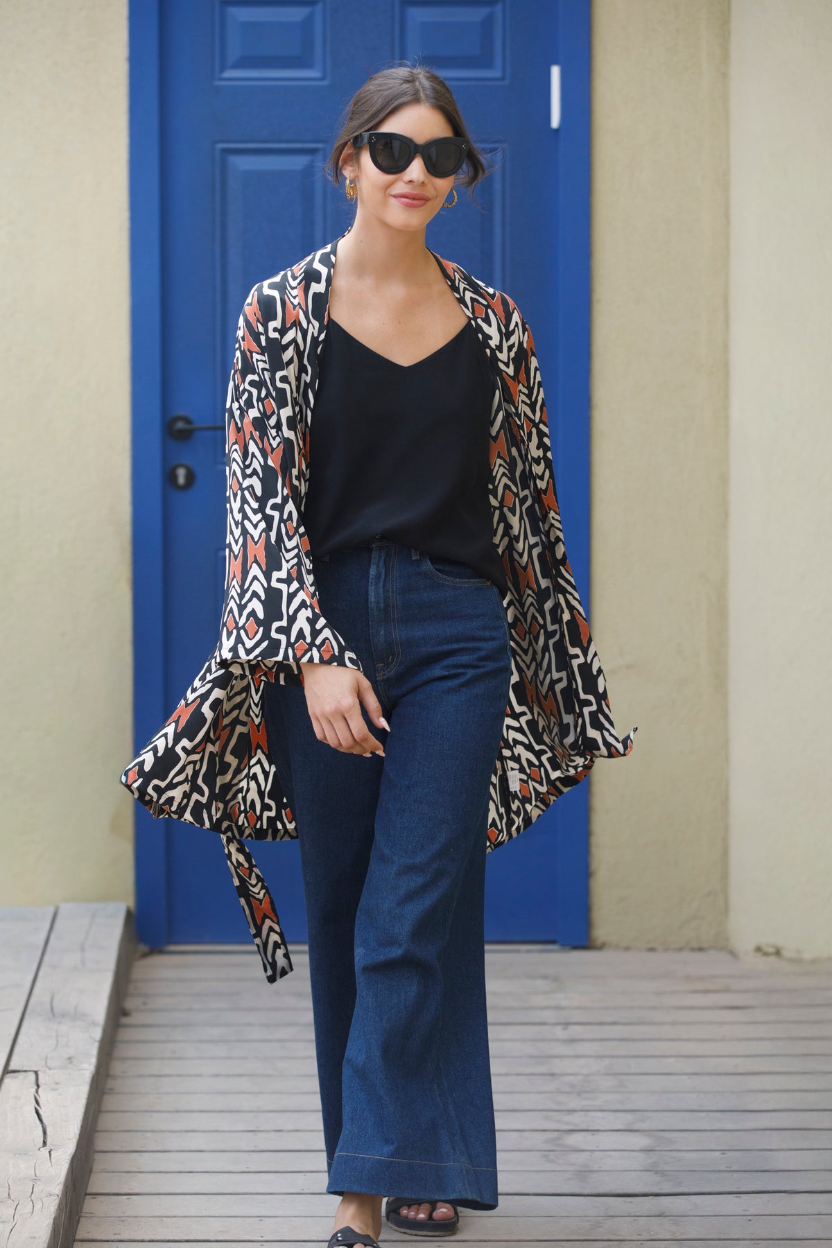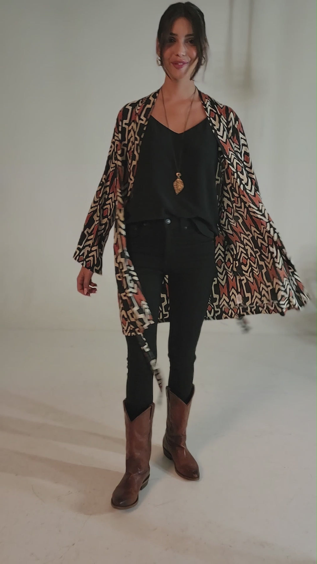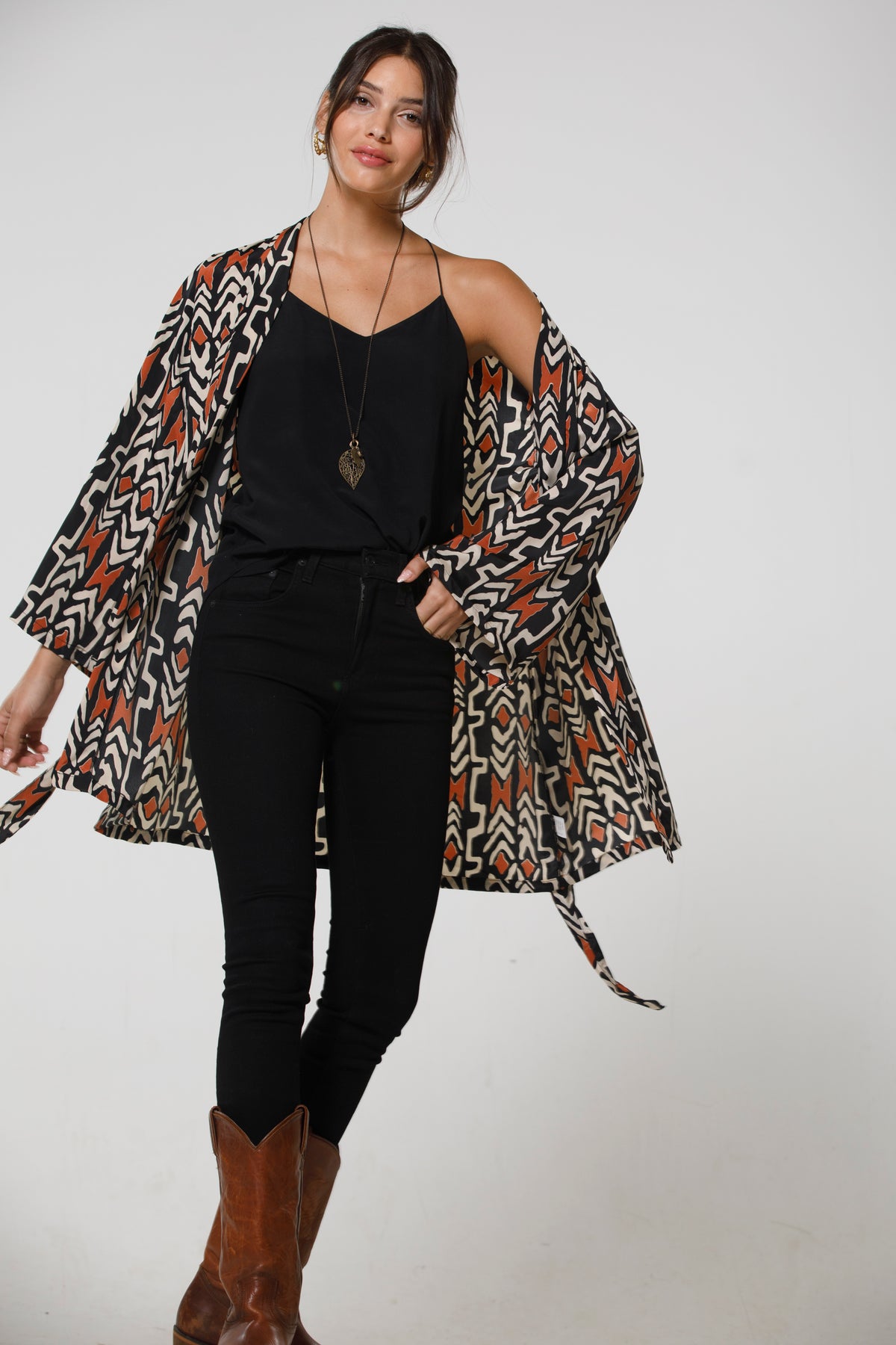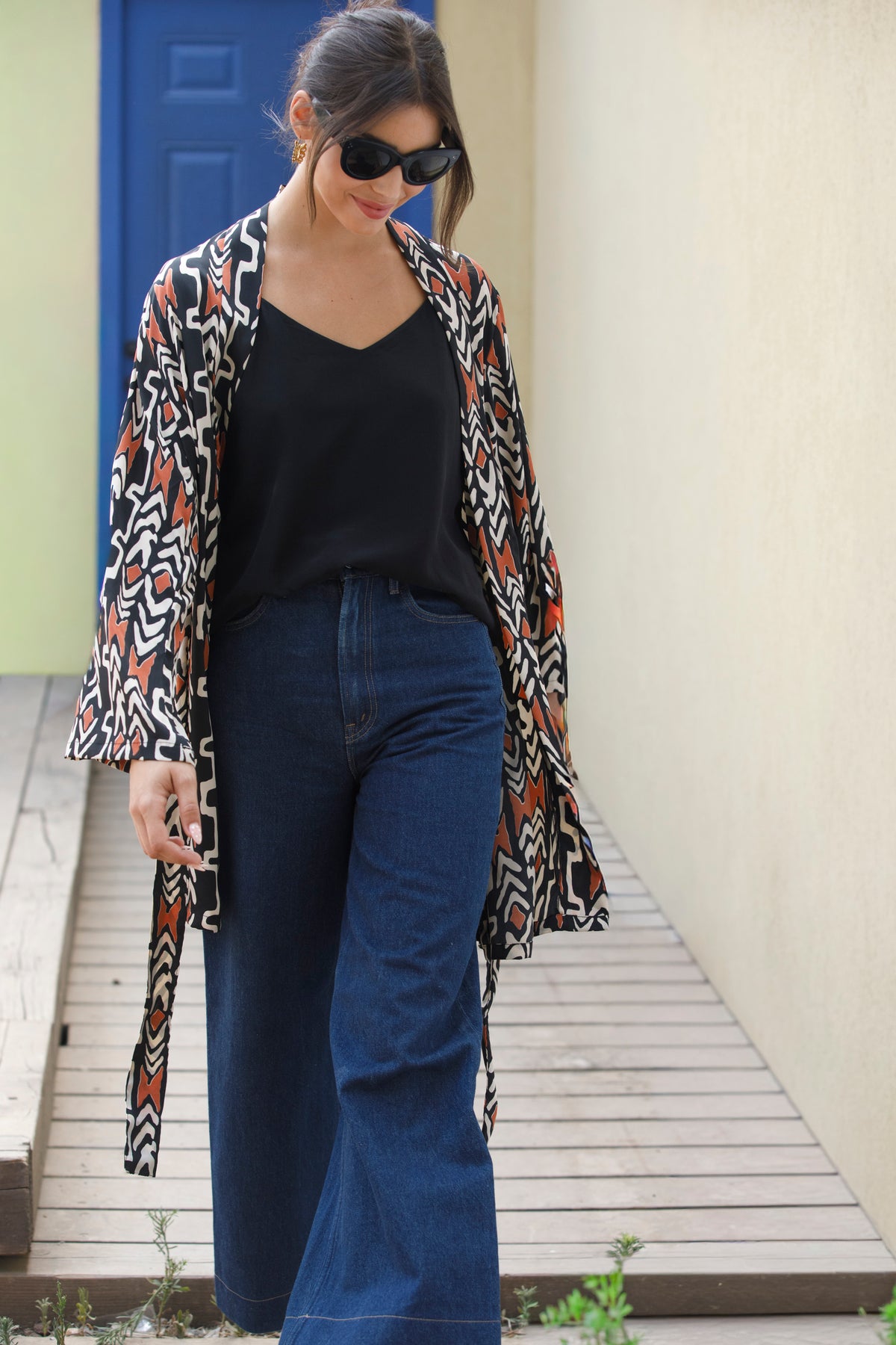 גזרת קימונו קלאסית ומנצחת, שרוול מתרחב בסגנון קימונו, מתאים ליום או לערב, וגם לקיץ למשרד ולמזגן, ולעונות מעבר.