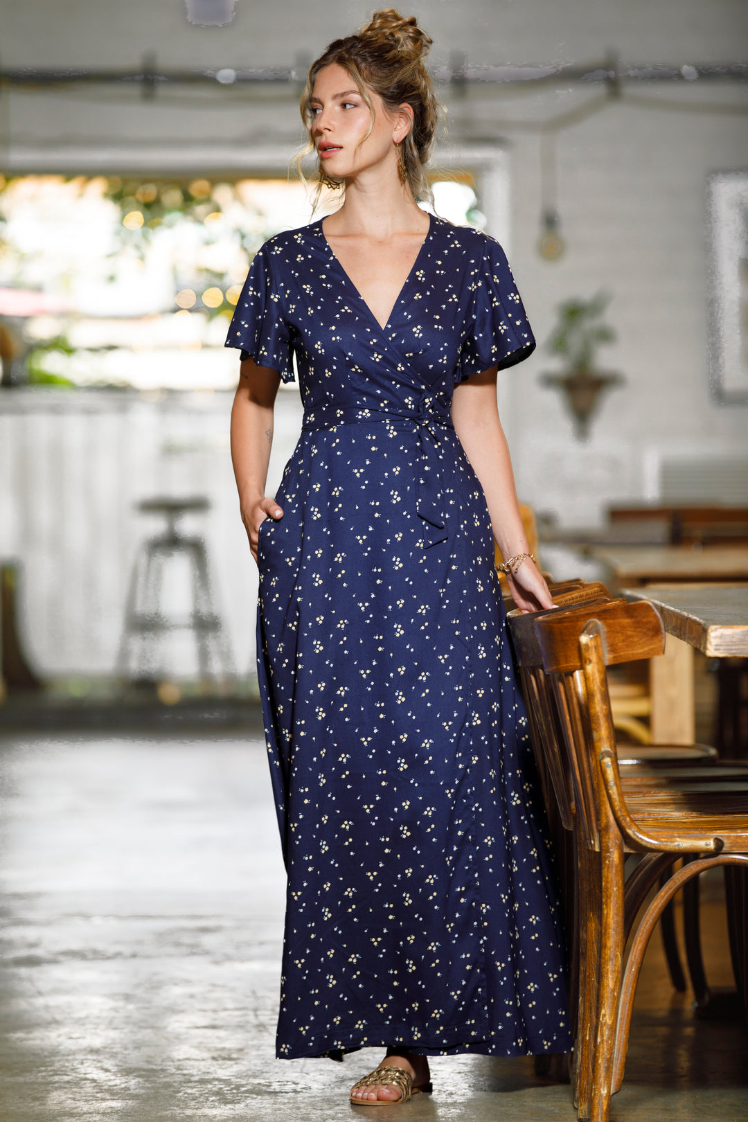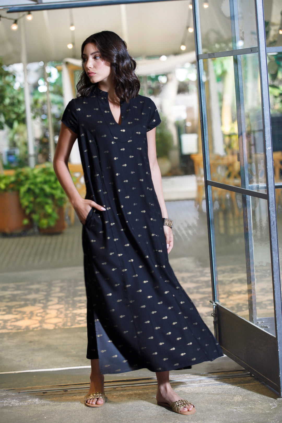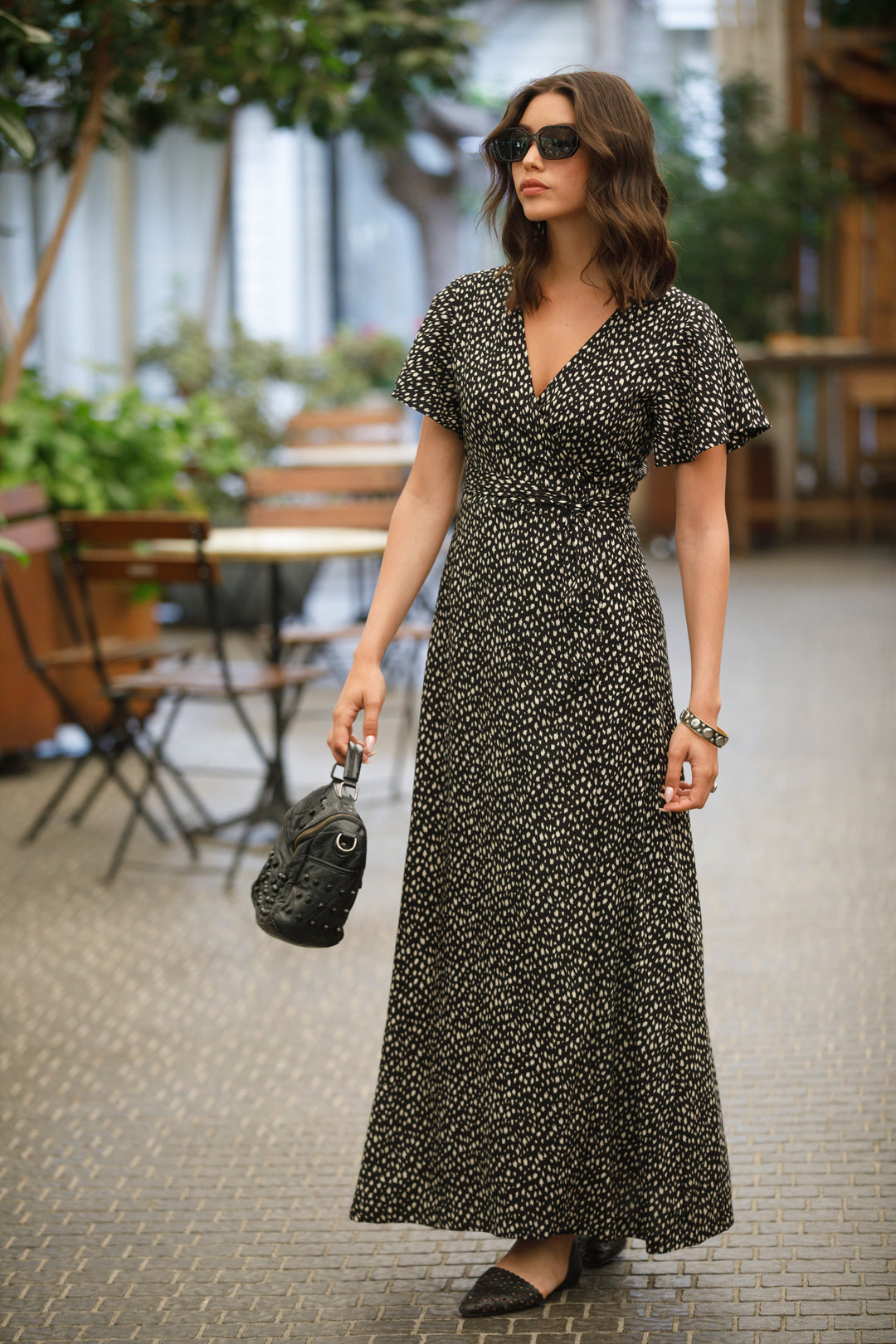 שמלת מעטפת מלודי מקסי שחור-לבן